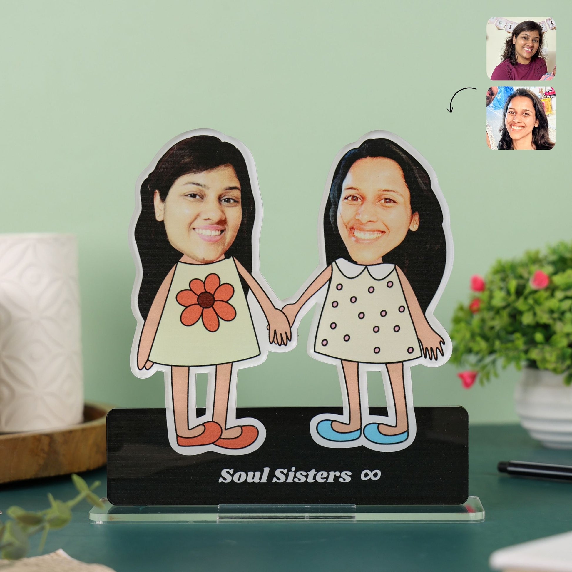 💖 A perfect gift for your sister, best friend, or colleague — this adorable 2-person caricature standee is all about celebrating your everlasting bond in the cutest way!