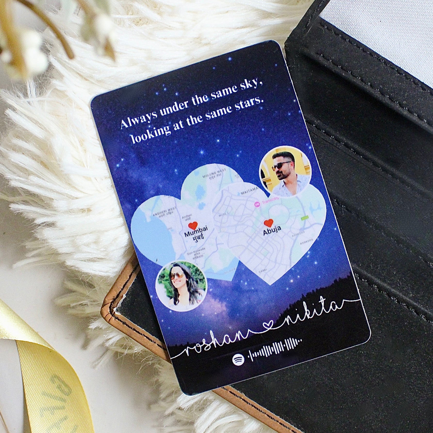 - Customisation - Add names, city maps of your respective locations, and individual photos.