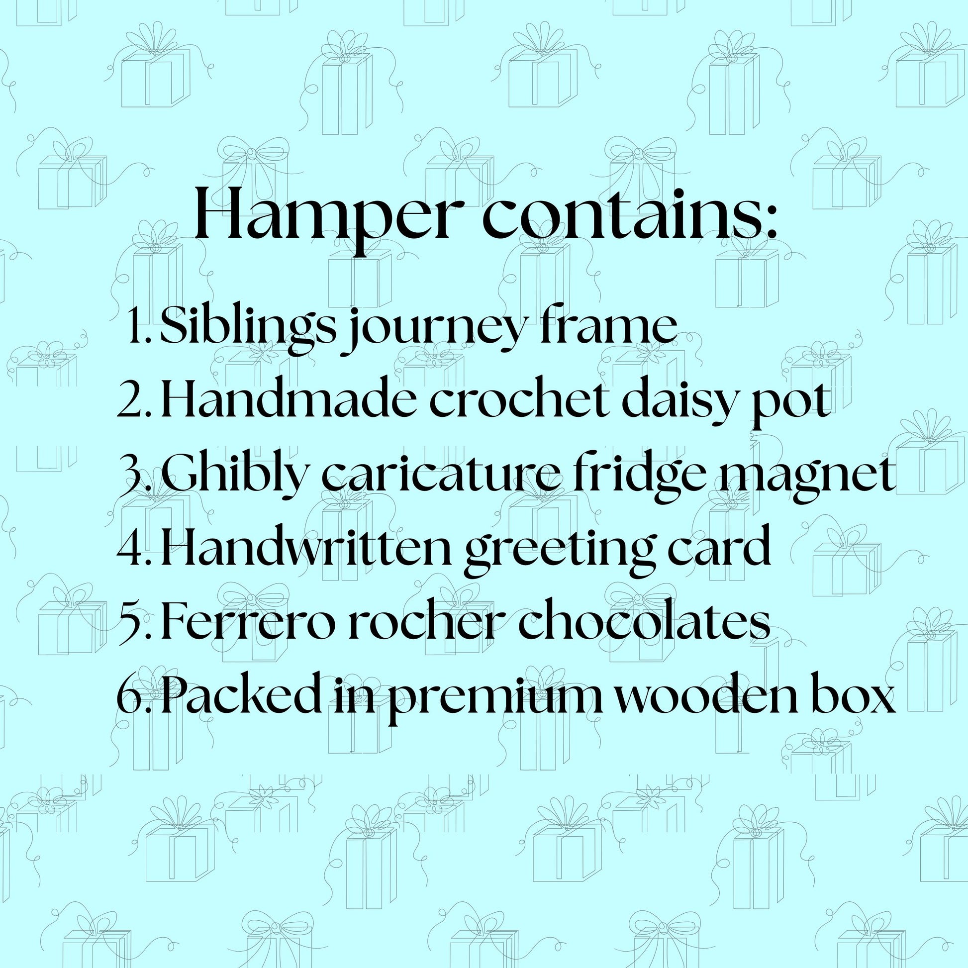 - Premium wooden box📦 – Durable, elegant, and reusable — a keepsake your sister will use again and again.